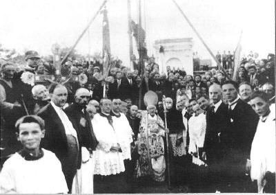 La prima pietra fu finalmente posta il 13 agosto 1928, alla presenza di Mons. De Giorgi, al termine di una lunga processione diretta al cimitero vecchio.