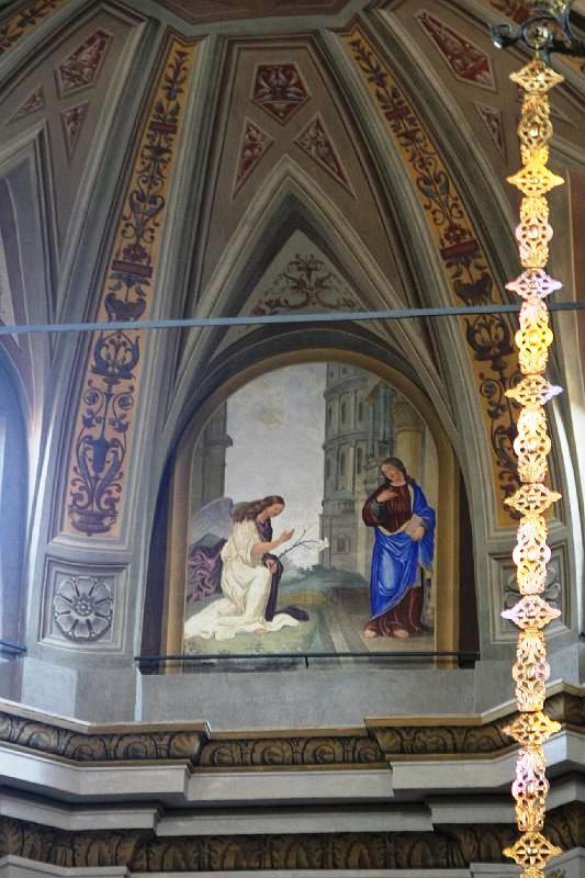 Nell'abside, ultima parte recuperata, è stato fatto emergere uno splendido affresco dell'annunciazione che era stato coperto dal dipinto di una finta finestra. ![]() Foto tratta da:www.parrocchiadisacconago.it Si tratta dell'unica parte delle pitture di inizio 1800 che sia stata fatta emergere dai lavori di restauro, in quanto decisamente di migliore qualità rispetto alla finta finestra realizzata dai fratelli Turri. Importantissimo è stato il ritrovamento di un crocefisso databile tra la fine del 1300 ed i primissimi anni del 1400. Si tratta di una opera di grande valore, che, recuperata e restaurata, è stata però posta in chiesa nuova. In tutta la zona bustese si conoscono solo 6 crocefissi così antichi: - In san Michele - in Sant'Antonio - In Sant'Edoardo, proveniente da una cascina di va Castelmorrone edificata sopra una cappelletta votiva innalzata sulla strada che da Busto conduceva a Sacconago - A Borsano Ora si è aggiunto questo di Sacconago, considerato il più antico ed il più pregevole di tutti. Può sembrare incredibile, ma il lavoro non è affatto finito. Secondo gli uomini del laboratorio di San Gregorio che hanno eseguito alcuni “saggi”, nella antica sagrestia e nei locali attualmente parzialmente intramezzati e destinati a servizio (scale, vani morti) e che erano parte dell’originaria chiesa tardo medioevale, in questa parte si nasconde forse il tesoro più prezioso. ![]() Foto tratta da:www.parrocchiadisacconago.it Sono già emerse, sotto uno spesso strato di “calce” pitturazioni affrescate che, a detta degli esperti, sono di fattura eccellente e si possono far risalire al 1400, 1500 e 1600. Queste opere sono rimaste “sepolte” sotto la calce per secoli e si sono salvate grazie al fatto che, nel costruire la chiesa del 1700, vennero riutilizzati parte dei muri della chiesa precedente, che facevano anche da sostegno all’adiacente vecchia casa parrocchiale, anche essa, prima o poi, destinata ad essere recuperata con l’antistante cortiletto. Ciò che sorprende è il fatto che, a detta dei critici, le pitture quattrocentesche e seicentesche sembrano essere state realizzate da maestranze di buon livello, quindi, certamente, molto costose per l’epoca. Se si pensa che il villaggio Sacconaghese, nel 1400, non poteva contare più di 4-500 anime, v’è da stupirsi davvero di come abbiano potuto quei pochi agricoltori mettere assieme le risorse per pagare pittori di qualità che decorassero la loro chiesa. Forse, allora, l’amore dei Sinaghini per la loro chiesa era qualcosa di immensamente grande, qualcosa che oggi l’umanità moderna fatica a comprendere. Ci consola che molti Sinaghini, anche non del tutto autoctoni, abbiano partecipato alla inaugurazione della fine marzo 2009, dimostrando che se oggi non si sa più creare arte paragonabile a quella del rinascimento, tuttavia è rinata la sensibilità per i tesori che abbiamo in casa. |