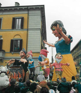 Ci preme davvero sottolineare la presenza di due carri molto imponenti, oserei dire “grandiosi”: il carro di Shrek e quello di Biancaneve. L’idea di realizzare questi due carri è stata davvero eccellente. Notevole la precisione e la bellezza realizzativi, benché sull’immane Shrek si notasse qualche sbavatura del rivestimento. Ottima però la verosimiglianza dei personaggi, e soprattutto felice l‘idea di utilizzare personaggi dei cartoni animati.