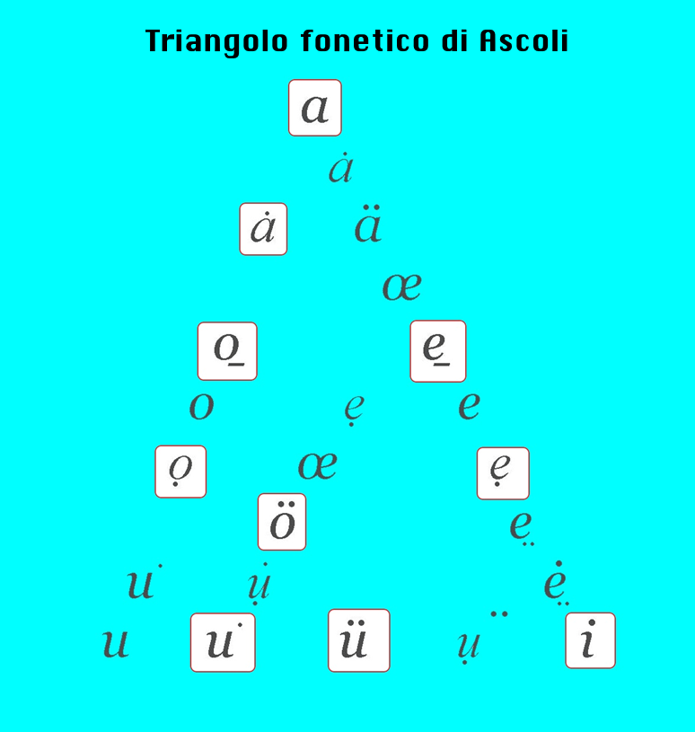 Ho poi completato lo studio glottologico delle vocali, basandomi sul triangolo fonetico di Ascoli.